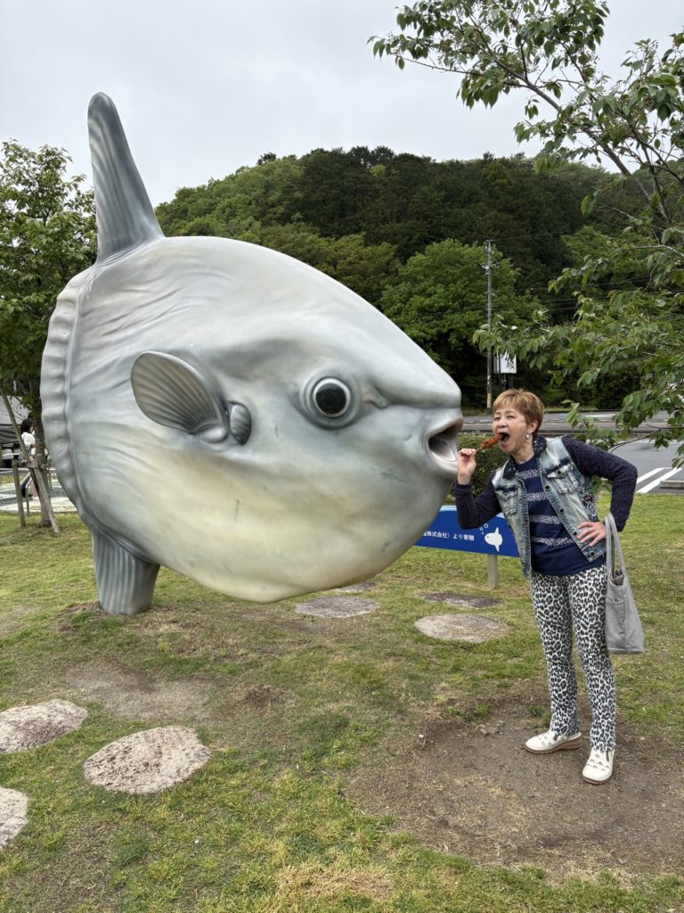 私は、外のマンボウのモニュメントにハマって、いっぱい写真を撮ってきました。