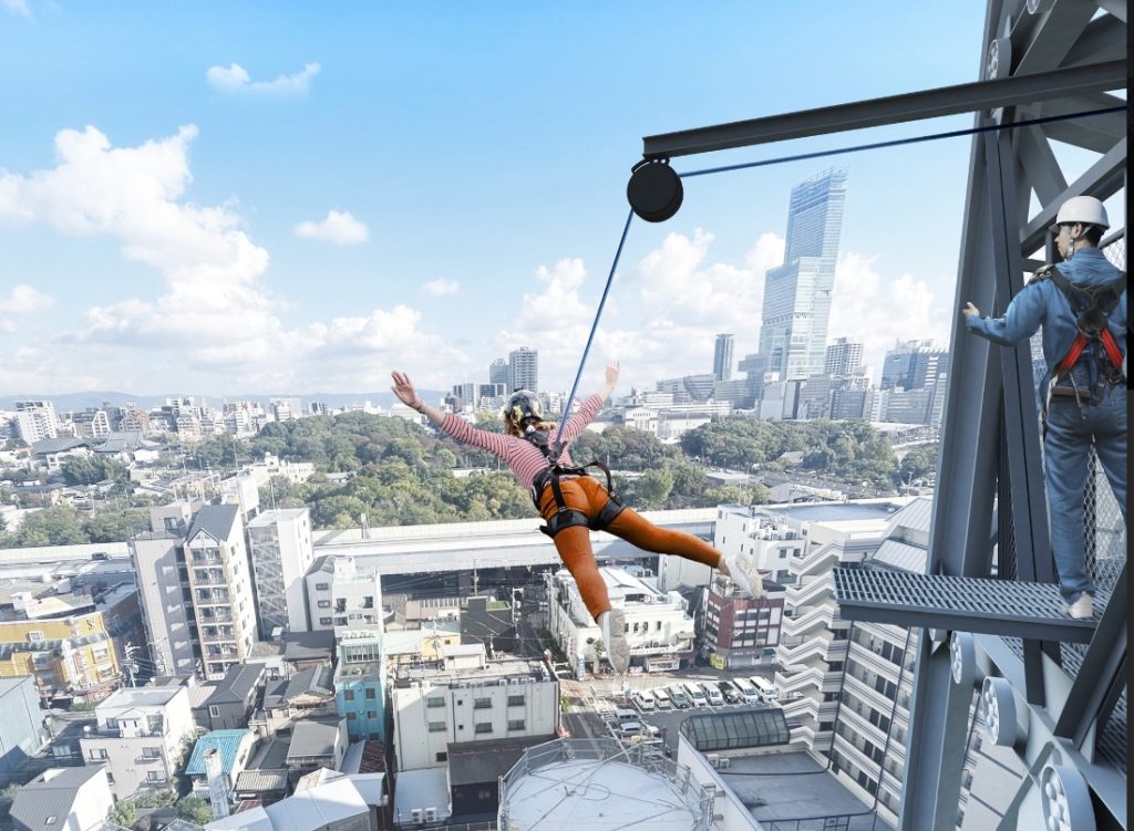 《ダイブ&ウォーク》といって、中間展望台の屋上(地上 から26m)の外側を、ハーネス(命綱)を着けて一周するのと、タワー中間部から約14m下の中間展望台までバンジージャンプするのがあります。