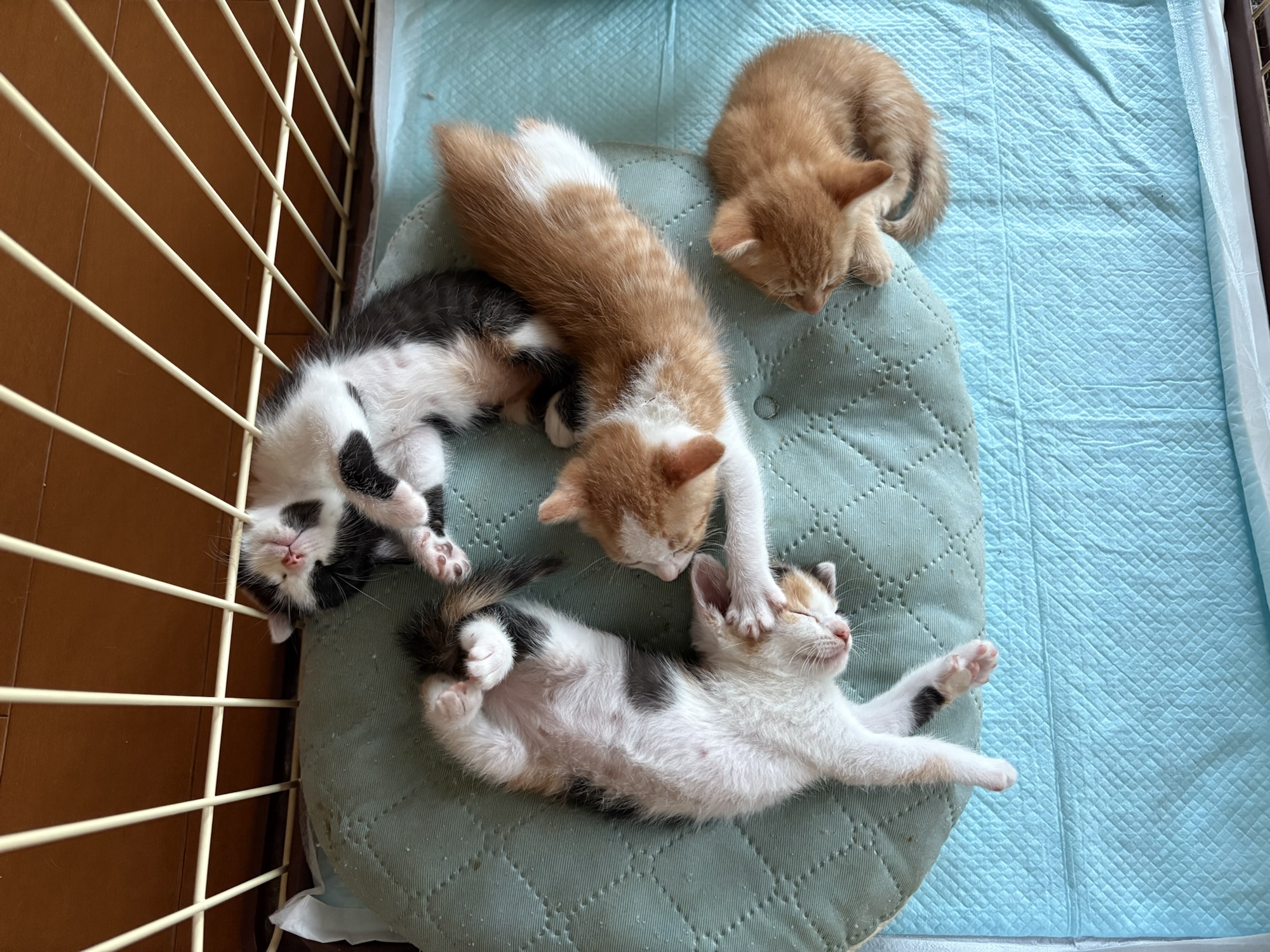 8月9日に、飼い主のKさんから『子猫を育ててもらえませんか?』と依頼を受け、4匹の子猫を預かることになりました。
