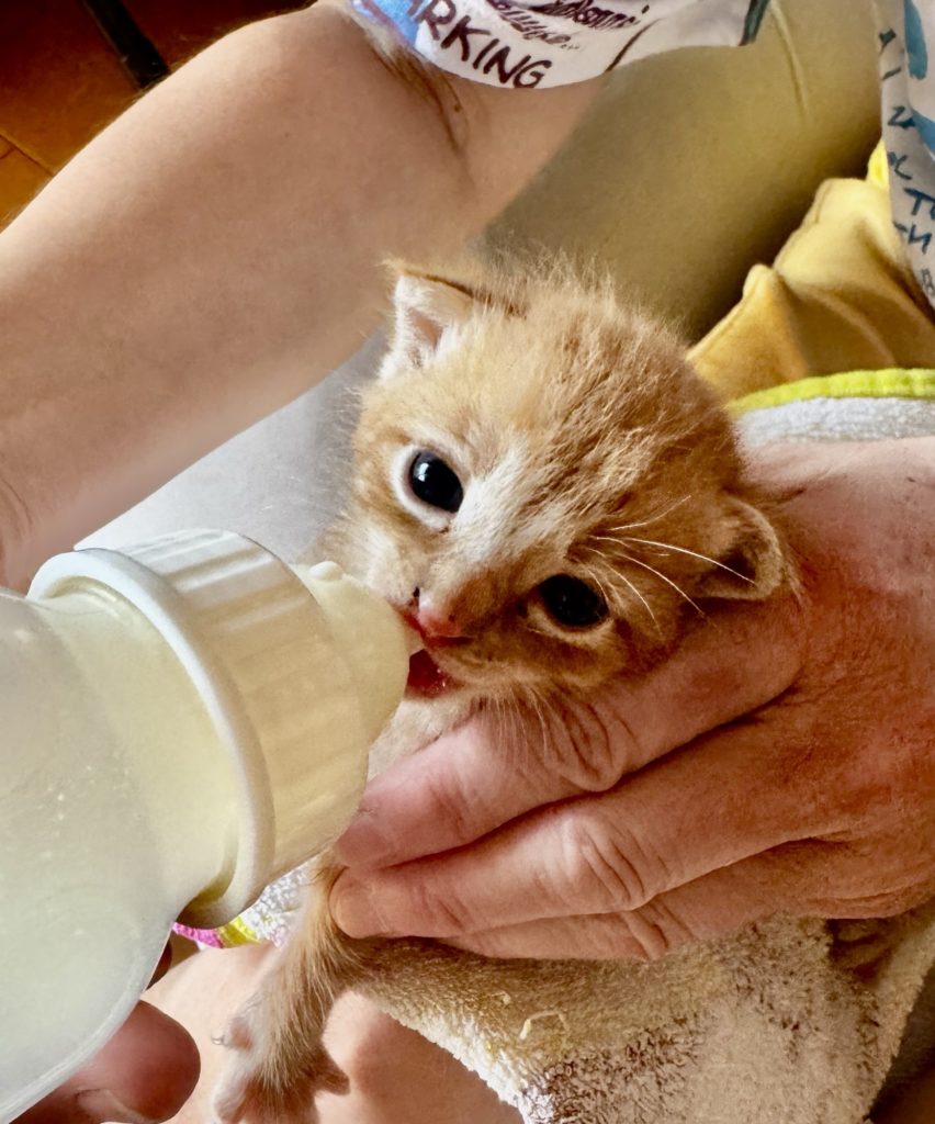 うちへ連れてきてもらったところ、すでに生後10日から2週間くらいは経っている感じでした。…目も開いて、歯も生えていました。でも、これではまだミルクで育てないとダメです。