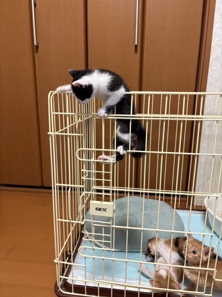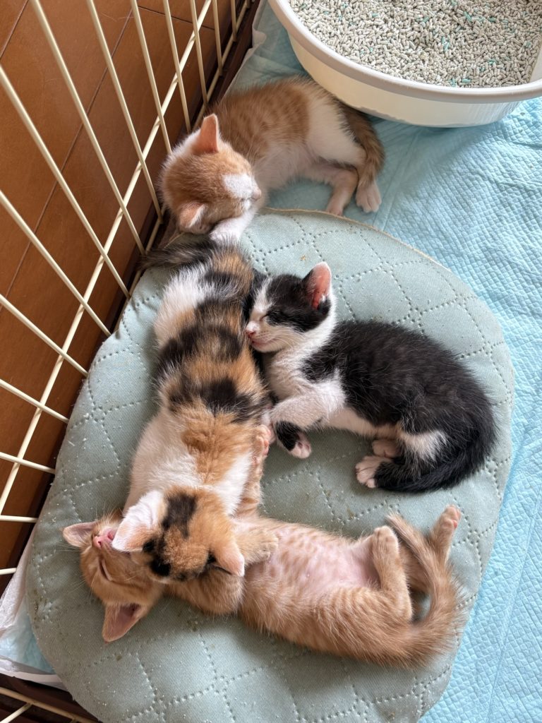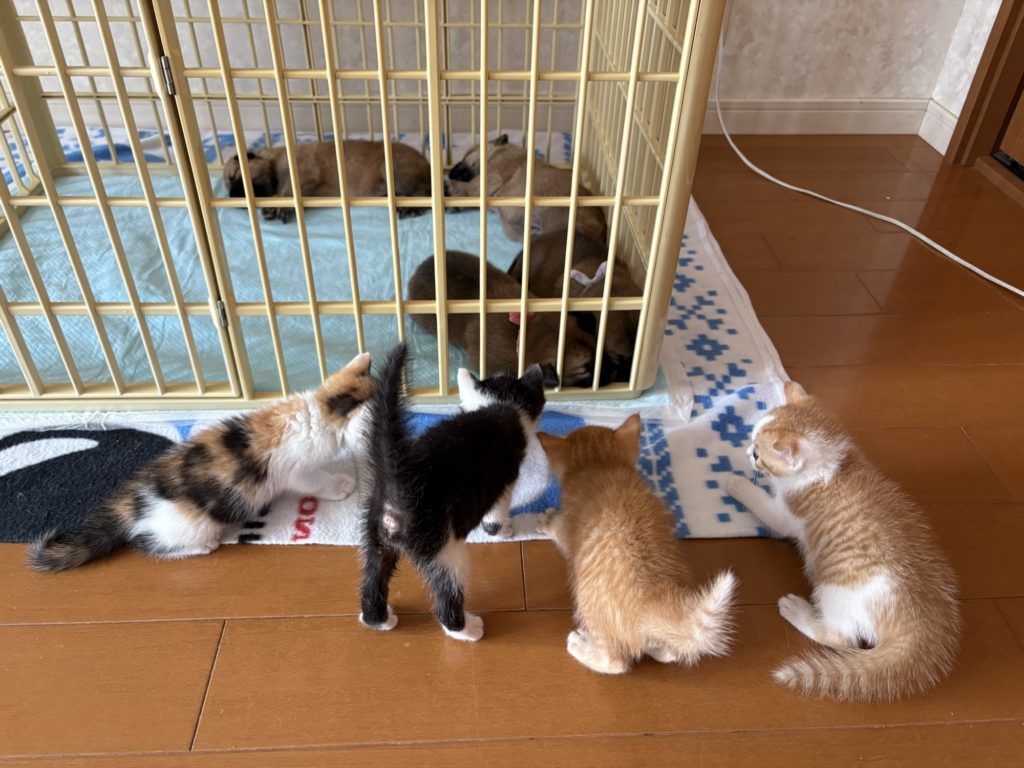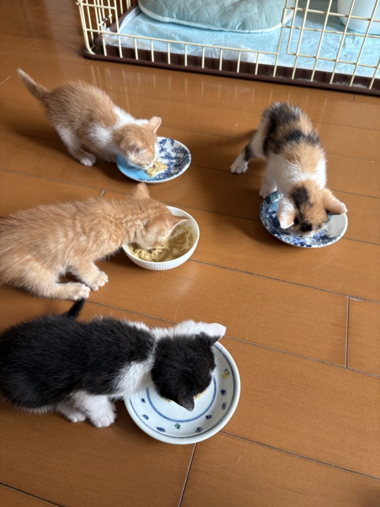 その後、離乳食を食べるようになり、さらに排泄も自分でできるようになり、4匹で遊んでお留守番もできると判断し、8月29日にKさんのお宅のお返ししました。