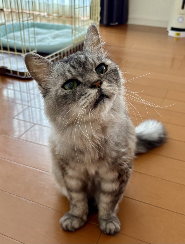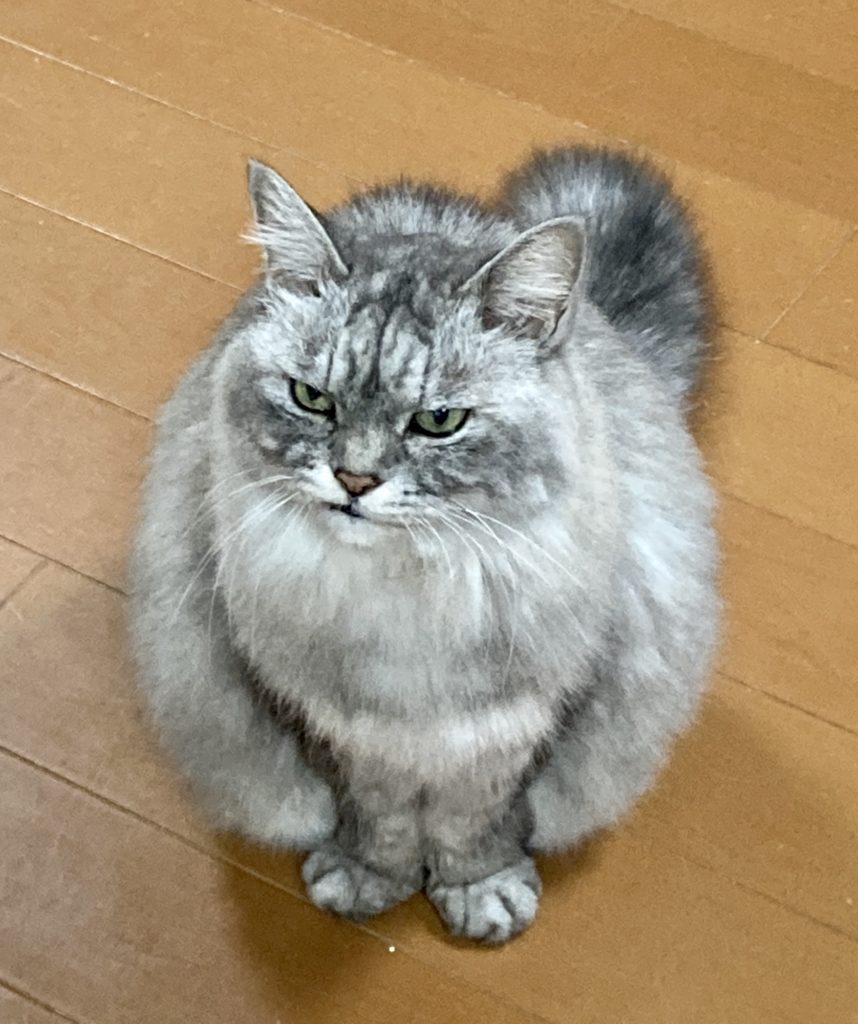 長毛種なのでふわふわなんですが、実はもうかなり痩せてガリガリです。