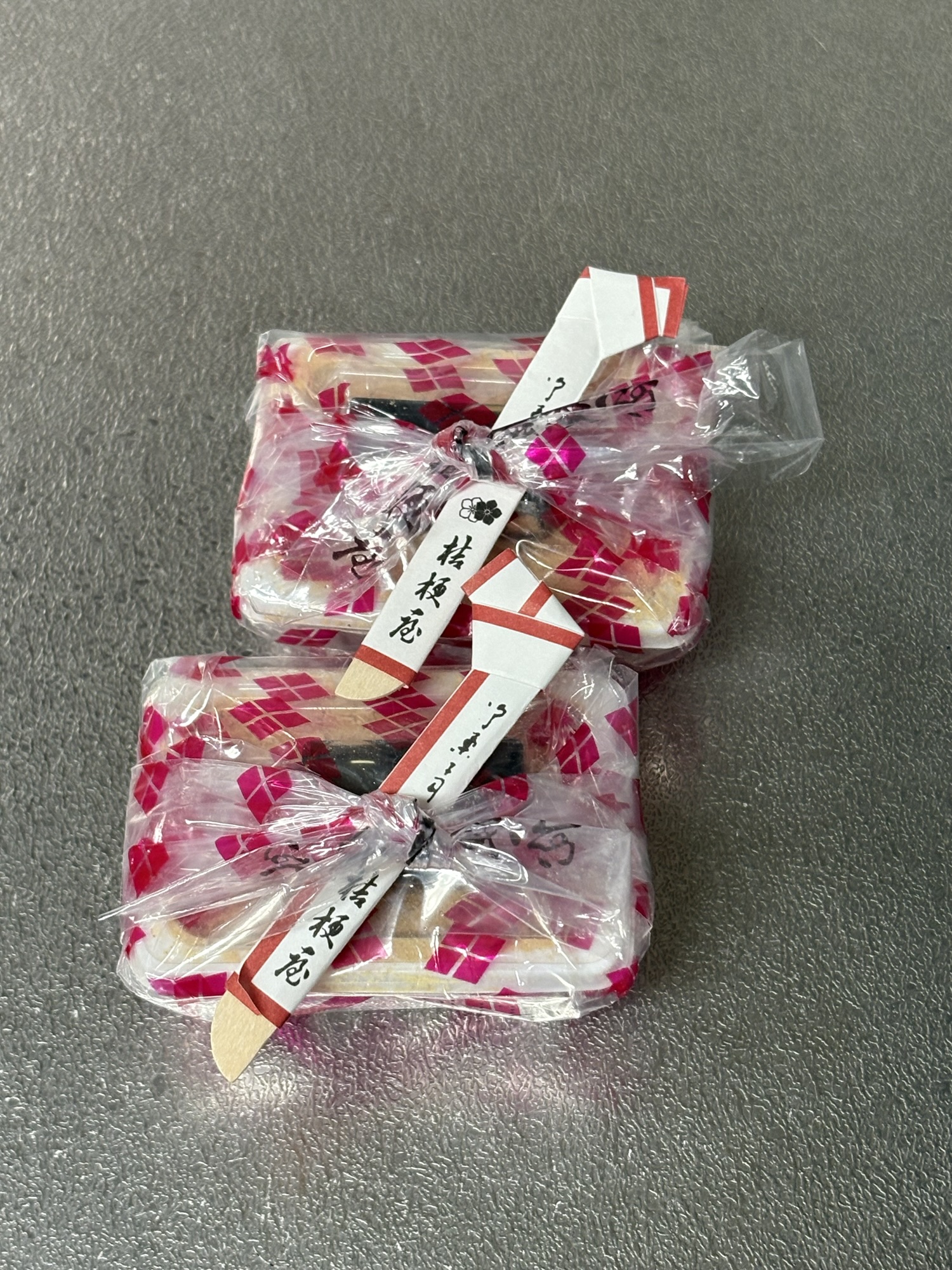 もう、信玄餅がかわいそうなくらいに《圧縮》されて原型をとどめていない感じでした。そして、一本むすびをしないといけないので、3人がかりでおさえて、押して、ビニールを伸ばして結んでました。