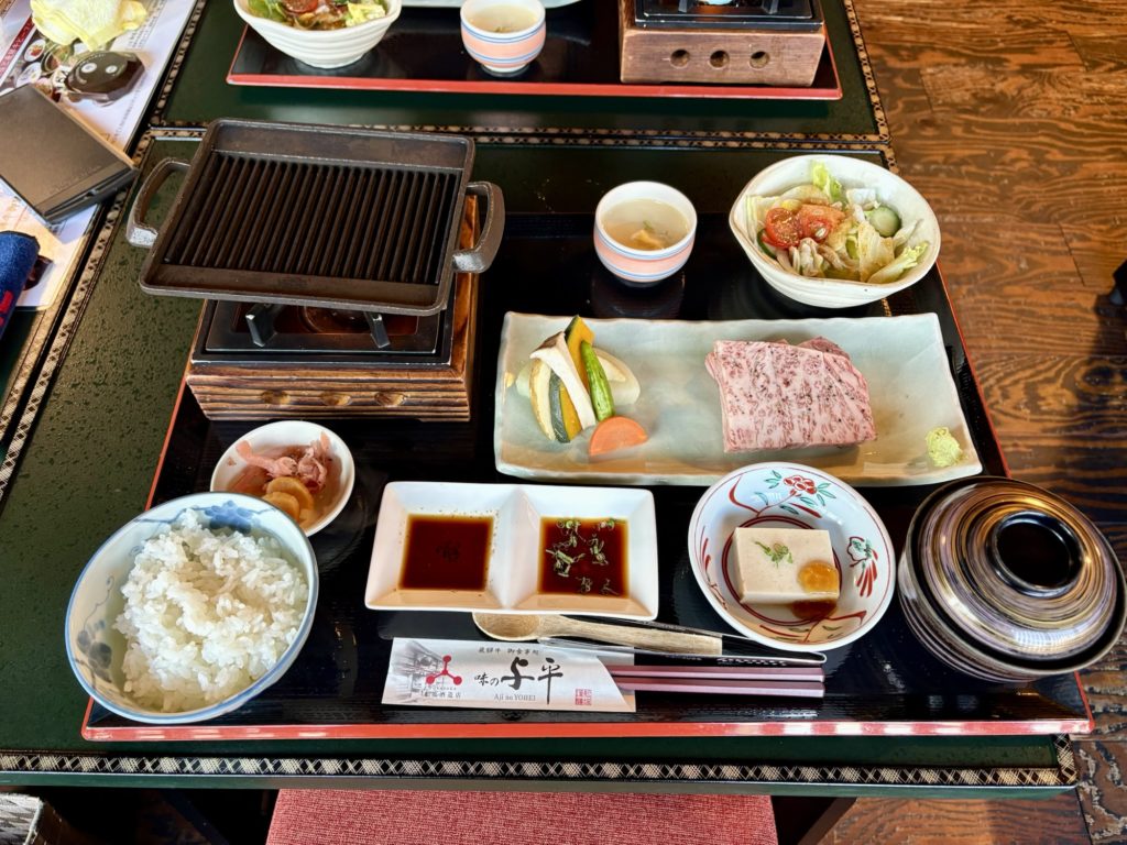 干支の置物を買い、今回の《ミッションコンプリート》して、そのあとはもう1つの目的《飛騨牛》を食べてきました。…今日のアイキャッチの写真がランチで食べた飛騨牛です。