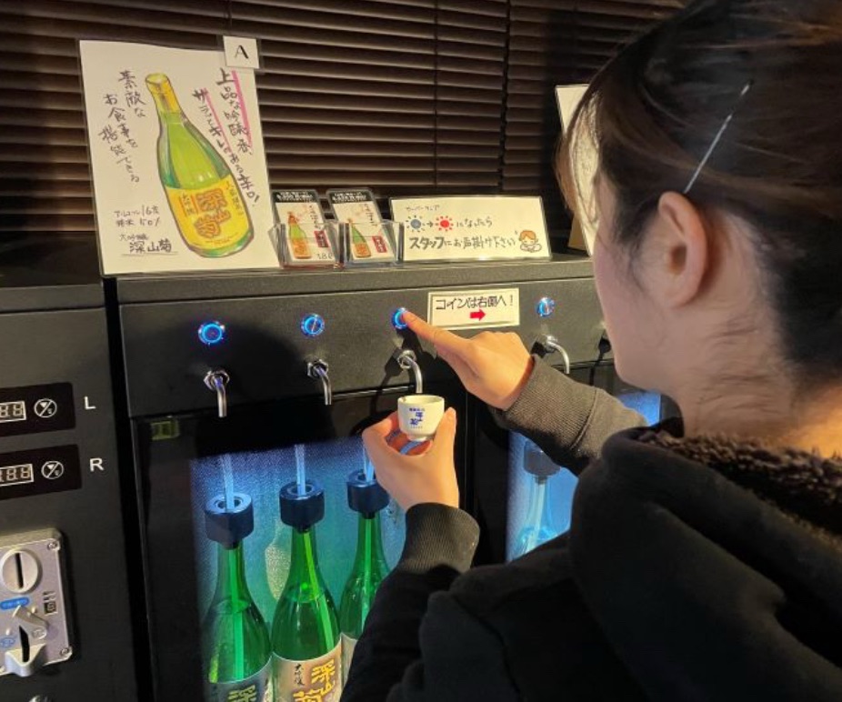ここでは《日本酒コインサーバー》ができます。好みの日本酒(お好きな銘柄)を利き酒気分で好きなだけ味わうことができます。