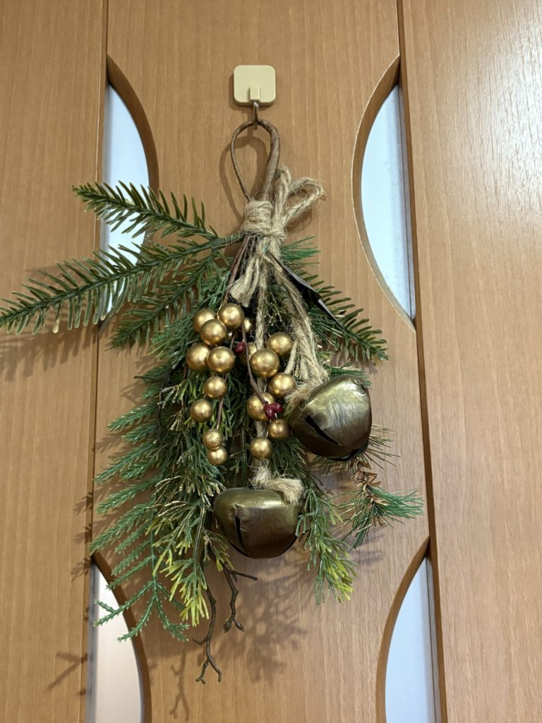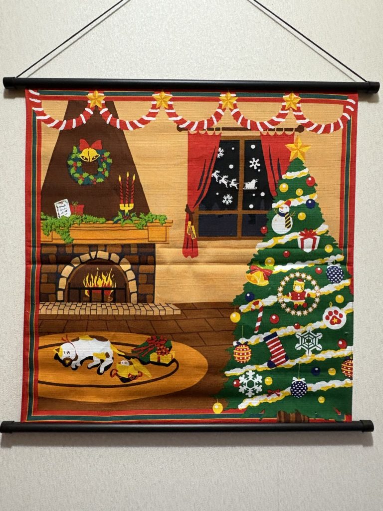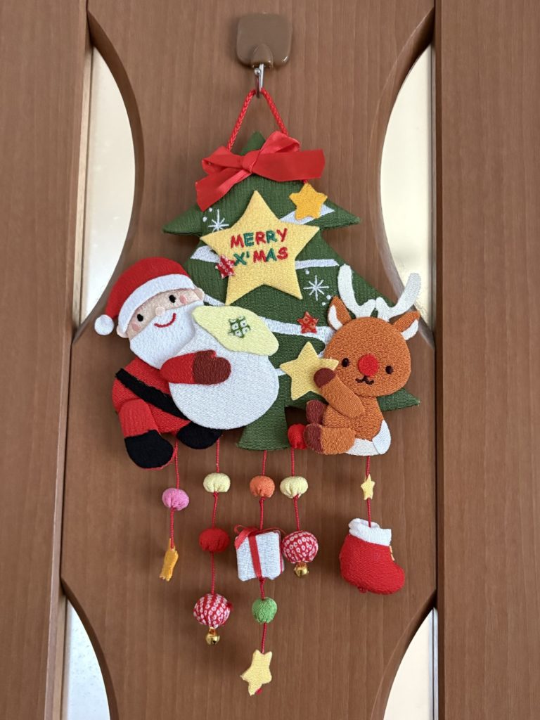 玄関のタペストリーもドア飾りも変えました。クリスマス大好きな私は一気に気分が高まりました。