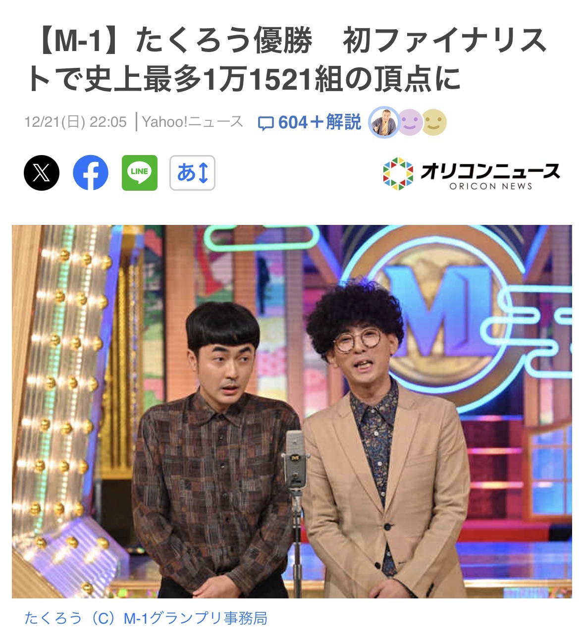 昨夜《M-1グランプリ》が開催されました。優勝は《たくろう》でした。