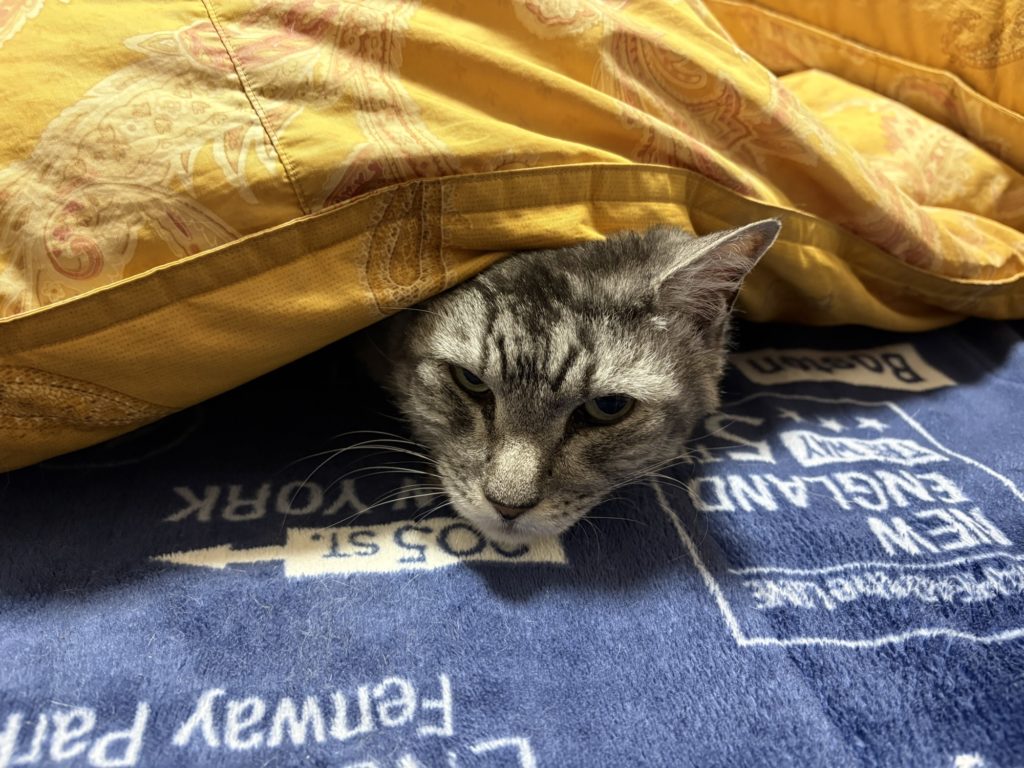 私は今、うちの猫の《あさひ・オス13歳》と寝ているのですが、私が寝返りをうつ時につぶしてしまうといけないと思って、どうしても気にしながら寝るので、ちょっと疲れが取れにくいってのがあります。