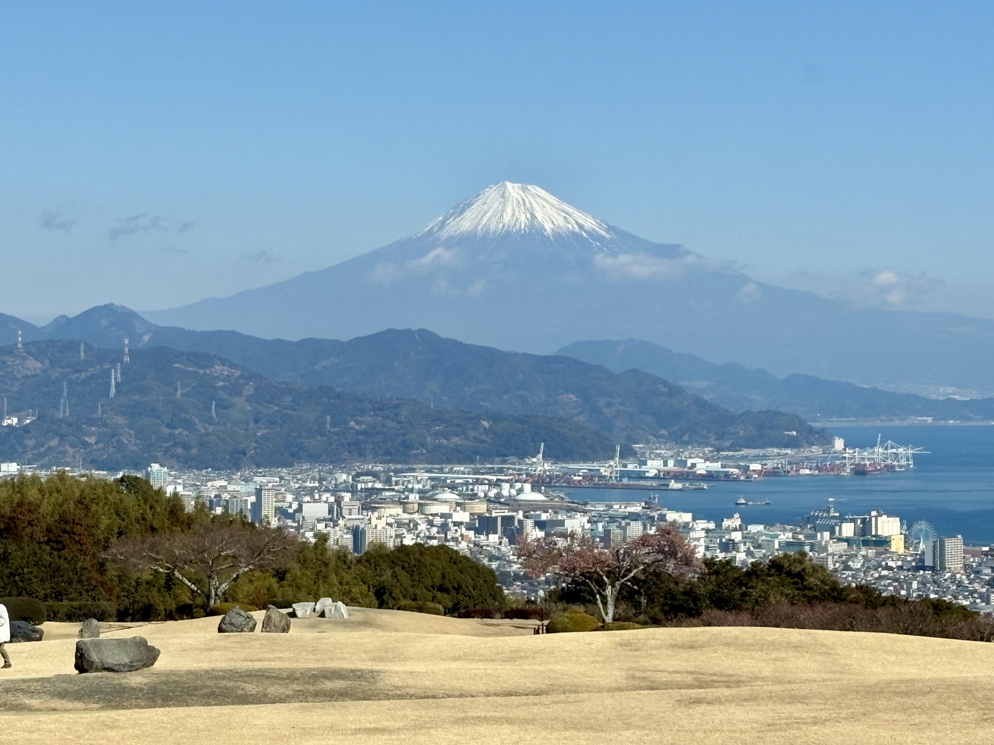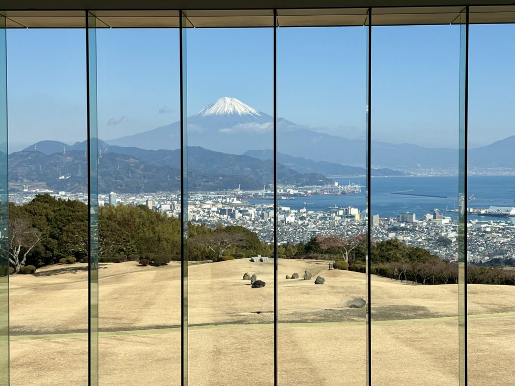 ランチ会場からは目の前に駿河湾が広がり、静岡市街と《富士山》が見えます。