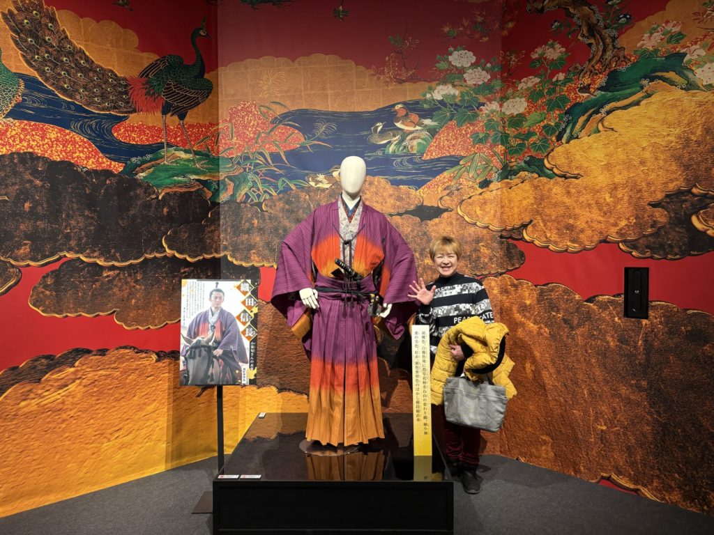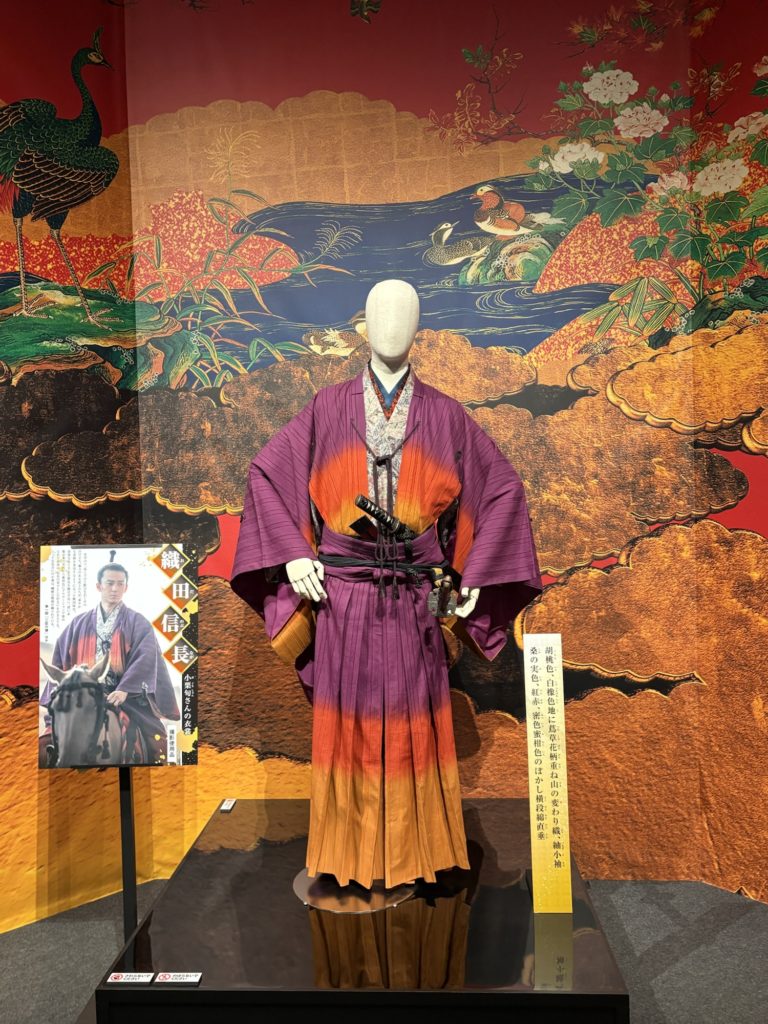 ↑↑↑これは織田信長役の《小栗旬》さんが着用した衣裳。…おお!カッコイイ。うしろの壁絵もステキだし。
