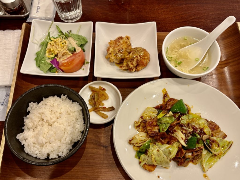 はぁ〜やっと昼ご飯です。本日のランチ《回鍋肉と唐揚げ》いただきま〜す!